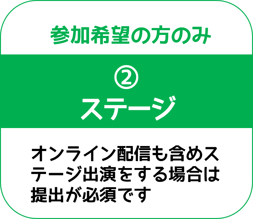 ② アイランダーステージ | 9/12 | ステージ・オンライン配信を実施の際は必須 | ||